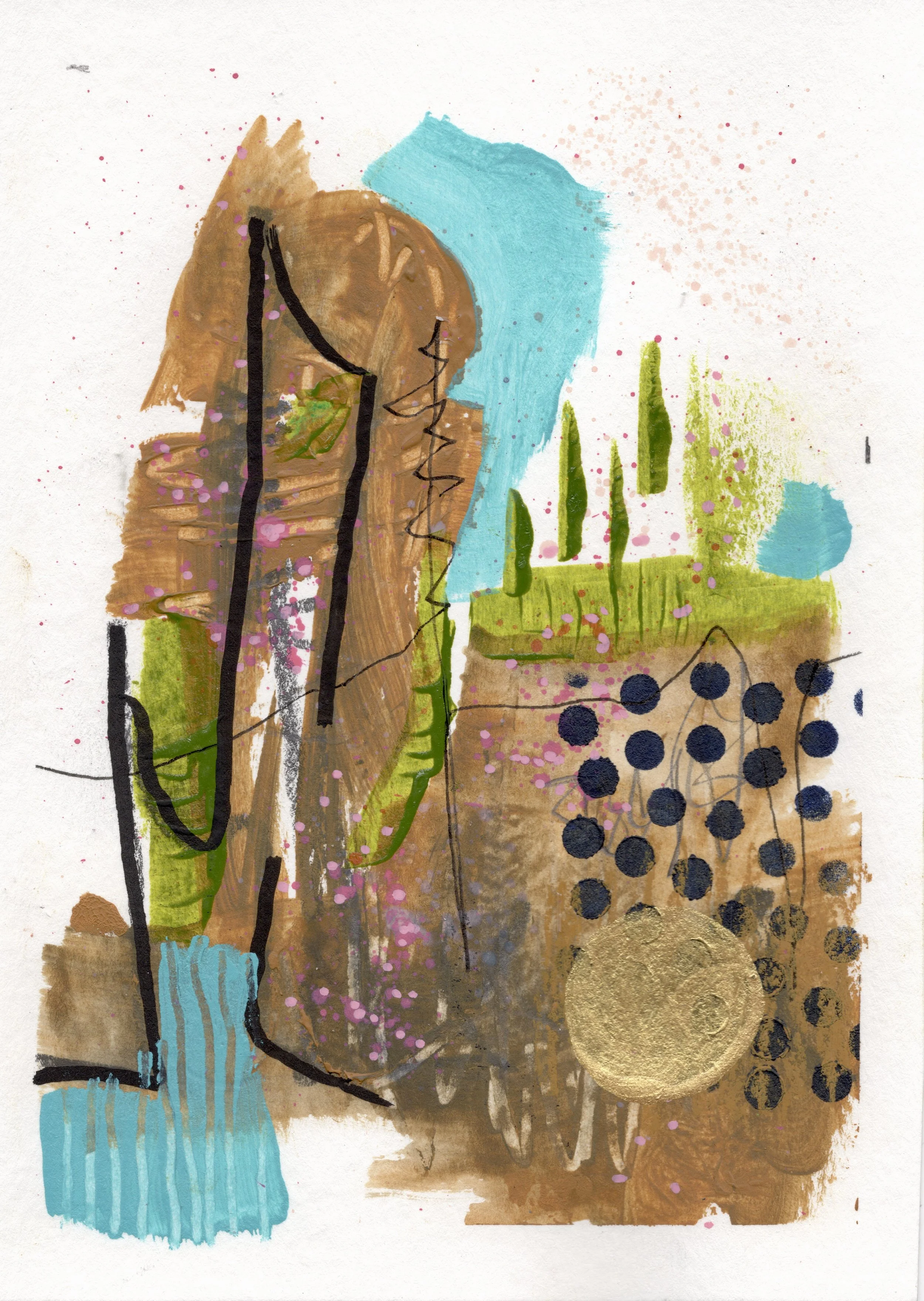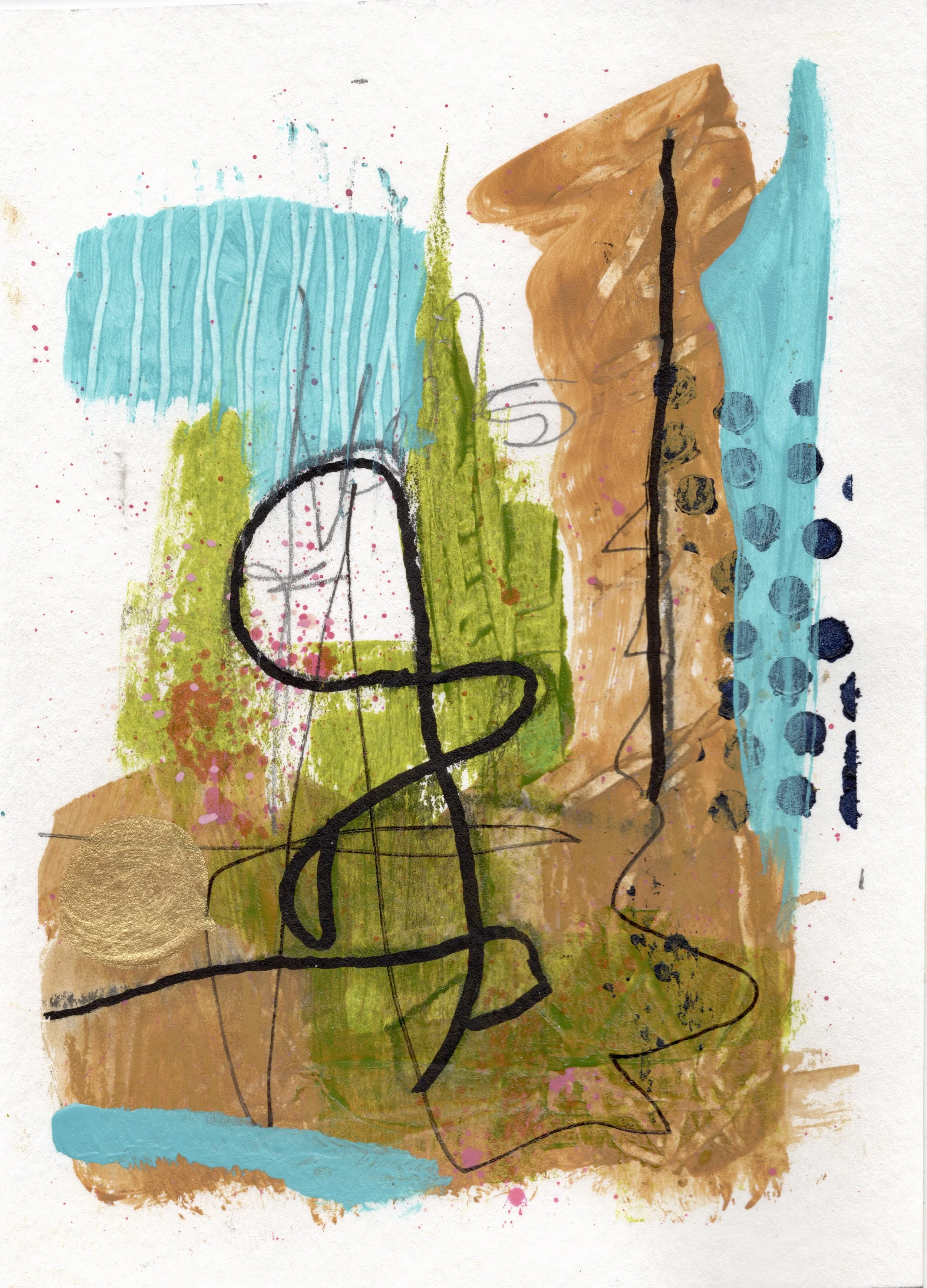 OchreTur 5, 2023. Mixed Media on paper, 5.5 x 8 inches / 14.5 x 20 cm.